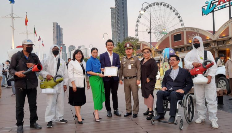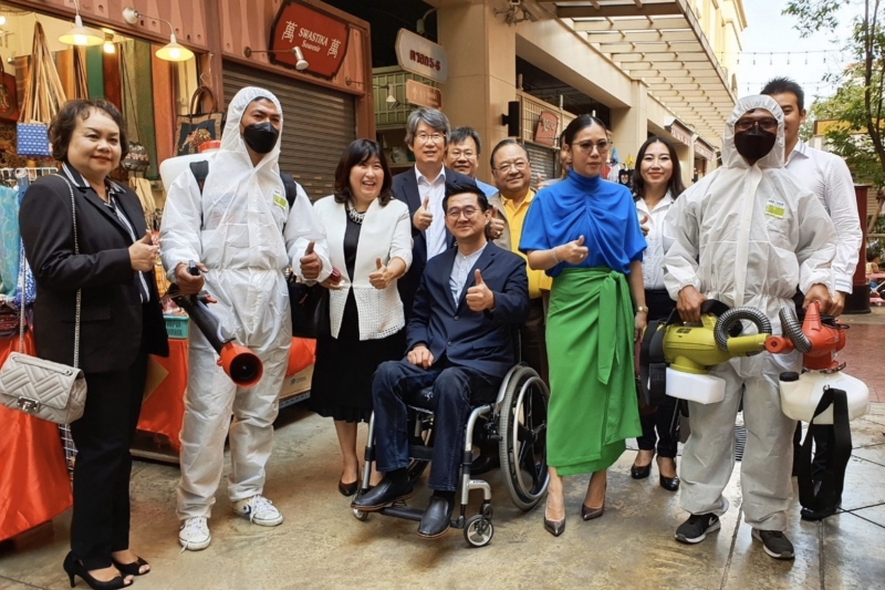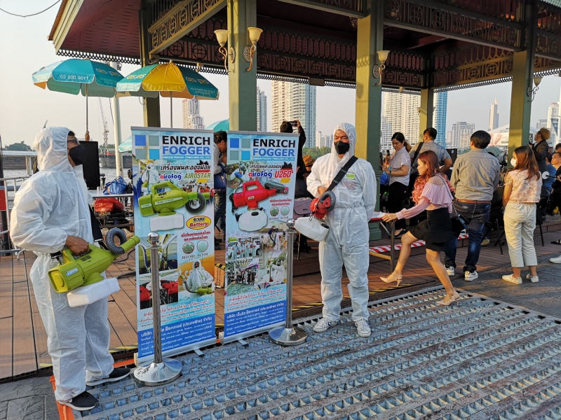 ฉีดพ่นทั่วบริเวณ ที่แหล่งท่องเที่ยวนานาชาติ เอเชียทีค ย่านเจริญกรุง