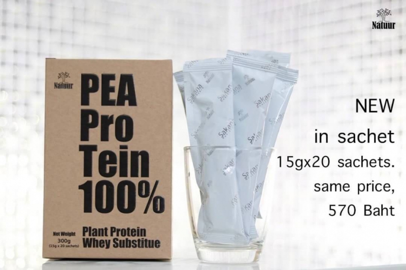 โปรตีนเข้มข้นสกัดจากถั่วลันเตาธรรมชาติ (yellow pea, Pisum sativum) ไม่มีการตกแต่งพันธุกรรม (Non-GMO) ปลูกในประเทศแคนาดาซึ่งเป็นต้นกำเนิดและมีความอุดมสมบูรณ์สูง 1 ซอง (15g) ให้โปรตีนสูงถึง 12 กรัม อุดมไปด้วยอะมิโนแอซิดและแร่ธาตุที่จำเป็นต่อร่างกาย รสธรรมชาติ ปราศจากสารปรุงแต่งสี กลิ่น รสใดๆ