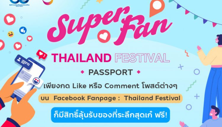 ร่วมค้นหาแฟนตัวยงของ Thailand Festival พบกับกิจกรรมสุดพิเศษ ที่ชวนทุกคนมาร่วมกดไลก์ คอมเมนต์ หรือแชร์โพสต์ต่างๆ บนแฟจเพจ Thailand Festival ก็จะได้ร่วมลุ้นรางวัลของที่ระลึกสุดพิเศษจากโครงการได้ทันที