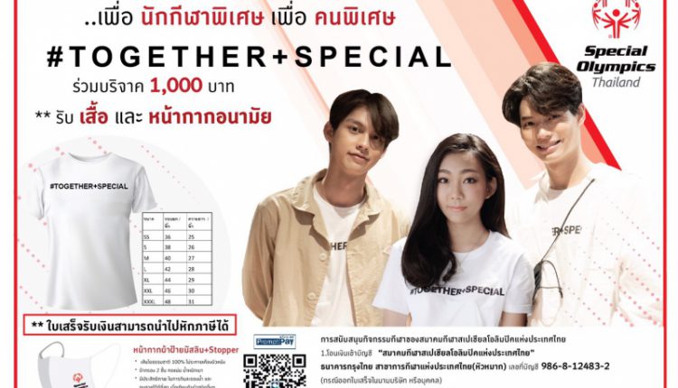 จึงได้จัดทำโครงการ #Together+Special ซึ่งเป็นโครงการที่แสดงให้เห็นถึงพลังและกำลังใจจากทุกๆ คนที่ร่วมเป็นส่วนหนึ่งเพื่อนักกีฬาพิเศษ เพื่อคนพิเศษ ด้วยกัน โดยท่านสามารถสมทบทุนบริจาคเพื่อนักกีฬาผู้พิการทางปัญญา