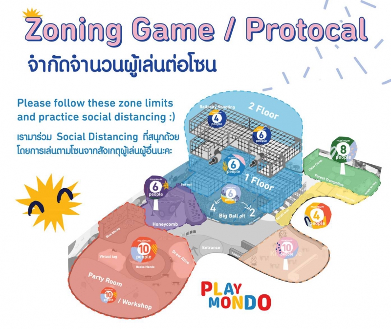 ด้านมาตรการป้องกันบริเวณพื้นที่สวนสนุก ‘เพลย์มอนโด’ (Plyamondo) เพื่อให้สอดคล้องกับมาตรการการเว้นระยะห่างทางสังคม (Social Distancing) จึงได้จัดมาตรการจำกัดจำนวนผู้เล่นต่อโซนเพื่อไม่ให้เกิดความแออัด พร้อมจัดทำแผนที่ลำดับการเล่นเพื่อให้ผู้เล่นไม่เกิดการกระจุกตัวต่อพื้นที่ใดพื้นที่หนึ่งมากเกินไป