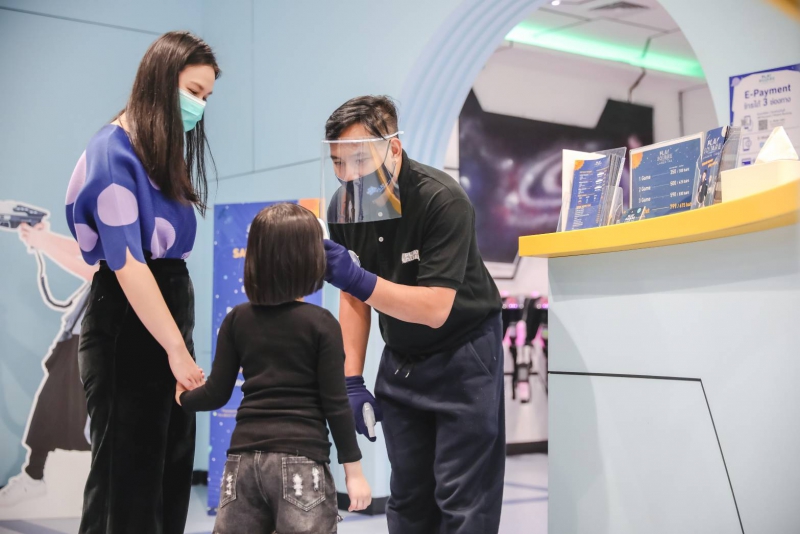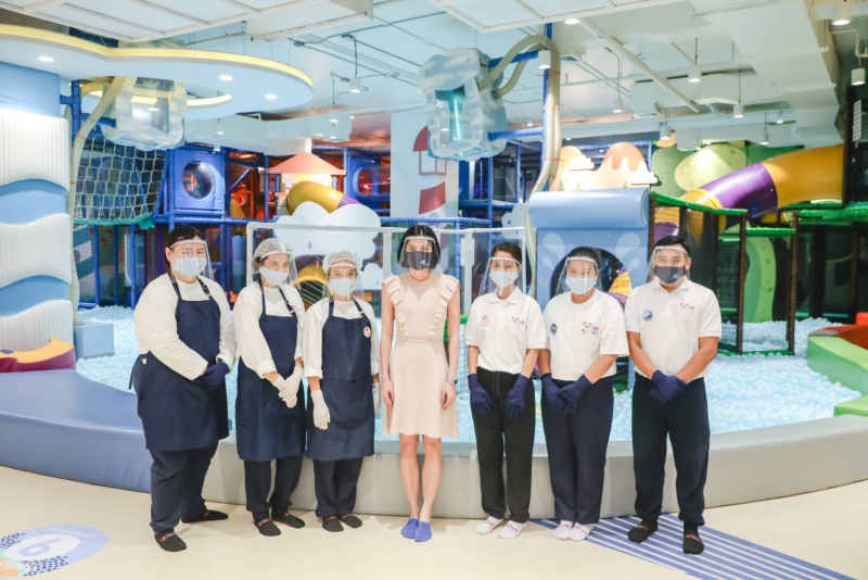 แต่ด้วยสถานการณ์การระบาดของไวรัสโควิด-19 ในครั้งนี้ ทำให้เรายิ่งต้องตระหนักถึงมาตรการในการดูแลรักษาความสะอาดและความปลอดภัยที่คลอบคลุมในทุกๆส่วนให้เข้มงวดขึ้นกว่าเดิม ทั้งในส่วนของสถานที่ พนักงาน รวมถึงผู้มาใช้บริการที่จะต้องเพิ่มขั้นตอนในการคัดกรองที่ละเอียดมากยิ่งขึ้น และยังมีการจำกัดผู้ใช้บริการในแต่ละโซนเพื่อลดความแออัดและการอยู่ใกล้ชิดกันตามหลัก Social Distancing สำหรับผู้ปกครองท่านไหนที่อาจจะยังมีความกังวลว่าเด็กๆ อาจจะไม่เข้าใจถึงมาตรการต่างๆ ในส่วนนี้ทางเราก็ได้จัดเตรียมเกมหลากหลายชนิดไว้รองรับ พร้อมให้ความรู้กับเด็กๆ ถึงมาตรการตามหลัก Social Distancing ซึ่งจะช่วยให้เด็กๆ ได้เรียนรู้และเข้าใจถึงสถานการณ์ในปัจจุบันได้ง่ายขึ้น”