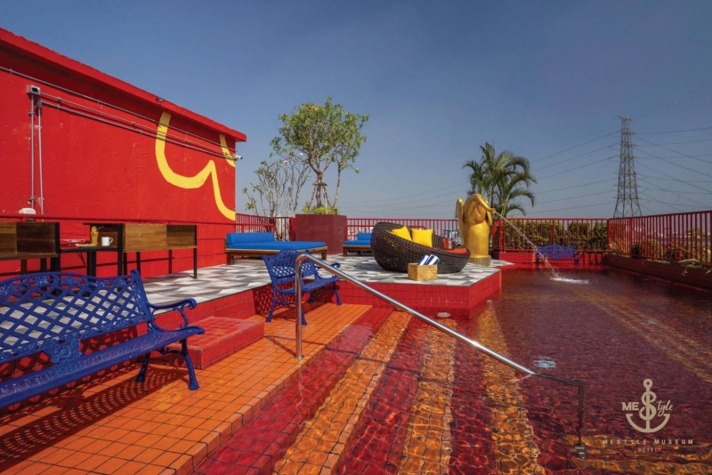 พร้อมทั้งสระว่ายน้ำสีแดงยาว 18 เมตร และยังสามารถสั่งเครื่องดื่มแก้วโปรดจากมีฮูลาฮูล่าบาร์ได้อีกด้วยนะคะ ตั้งอยู่ที่ชั้น 8