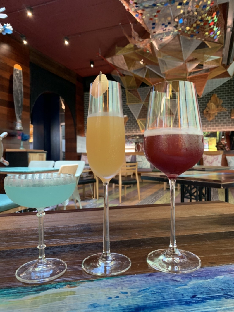 1. ละออง (September) ราคา 320+ บาท ส่วนผสมคือ Gin, maraqin liqueur, lime juice, violet, jasmine syrup
