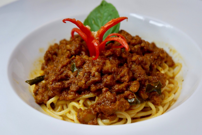 7. สปาเก็ตตี้ซอสพะแนงหมู