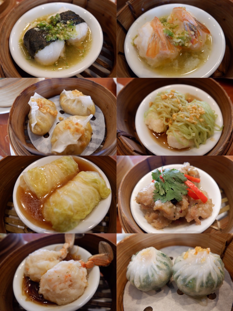 ถุงทองนึ่ง ก๋วยเตี๋ยวหลอด เผือกทอด ฟองเต้าหู้ทอด ปอเปี๊ยะทอด ซี่โครงหมูอ่อนนึ่งเต้าซี่ ฝั่นโก๋นึ่ง และ กังป๋วยหัวไชเท้าทรงเครื่อง