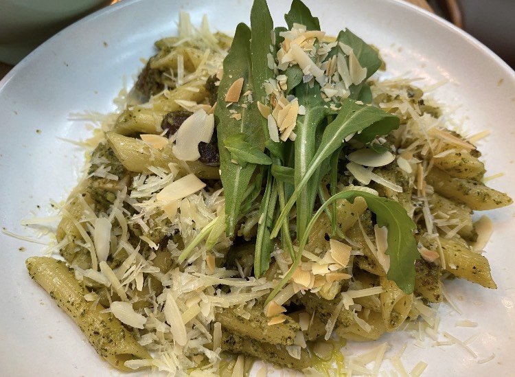 4. Penne Pesto penne with grilled cajun spiced chicken breast and organic mushrooms in our signature basil pesto sauce