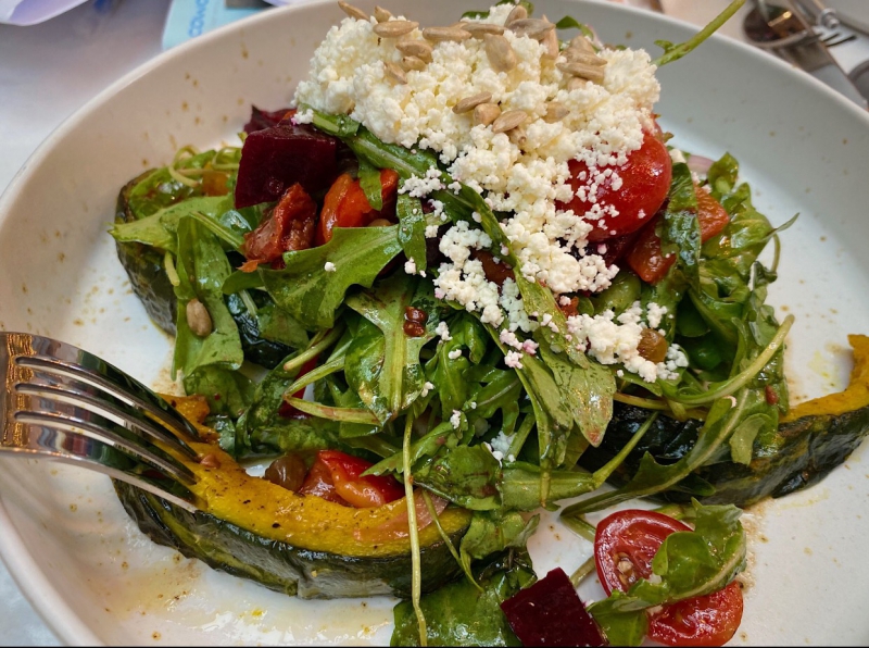 1. Roasted Pumpkin Salad roasted Japanese pumpkin served with beetroot, wild rocket, sunflower seeds and feta cheese served with honey balsamic dressing
