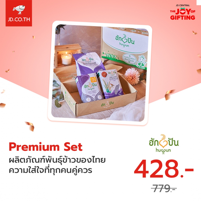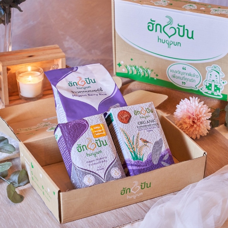 ปิดท้ายที่ ผลิตภัณฑ์จากข้าวเพื่อสุขภาพ แบรนด์ Hugpun แน่นอนว่าข้าวเป็นอาหารหลักของคนไทย ในโอกาสปีใหม่จึงไม่มีอะไรจะดีไปกว่า มอบข้าวและผลิตภัณฑ์จากข้าว โดยเฉพาะถ้าเป็นข้าวออร์แกนิค ที่ดีต่อสุขภาพ ปลอดสารพิษด้วย มีทั้ง ข้าวพร้อมหุง, ผงข้าว, โจ๊ก และเครื่องดื่มที่ทำจากข้าว โดยจัดมาเป็นหลากหลายเซท