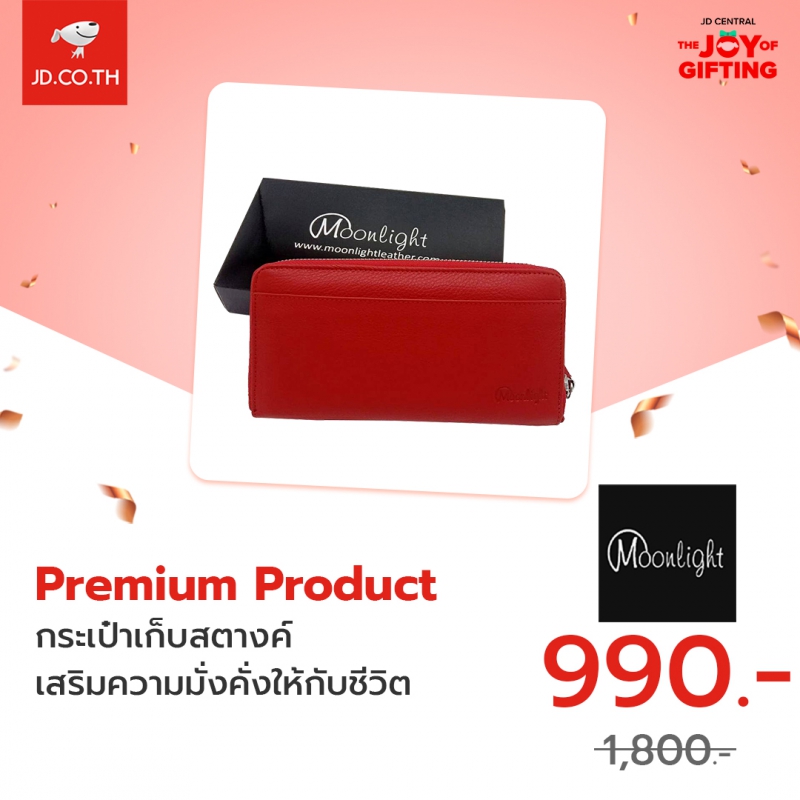 มาที่งานเครื่องหนังไทย กระเป๋าสตางค์หนังแท้ แบรนด์ Moonlight Leather กระเป๋าสตางค์ใบยาวสีแดง ผลิตจากหนังวัวแท้ ฟอกนิ่มและเคลือบสะท้อนน้ำ งานตัดเย็บประณีตทุกจุด คลาสสิก เรียบหรู เหมาะกับในโอกาสปีใหม่ เสริมสิริมงคล