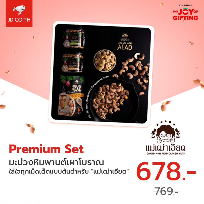 ถัดมาขอแนะนำเป็นเซทของทานเล่น มะม่วงหิมพานต์เผาโบราณ แบรนด์ แม่เฒ่าเอียด มะม่วงหิมพานต์ ที่ปลูกขึ้นบนผืนดินที่ดูแลตามวิถีธรรมชาติ เพื่อเก็บผลผลิตที่ได้คุณภาพนำมาผ่านกระบวนการเผาด้วยวิธีโบราณแบบดั้งเดิม คงไว้ซึ่งเอกลักษณ์ตามภูมิปัญญา