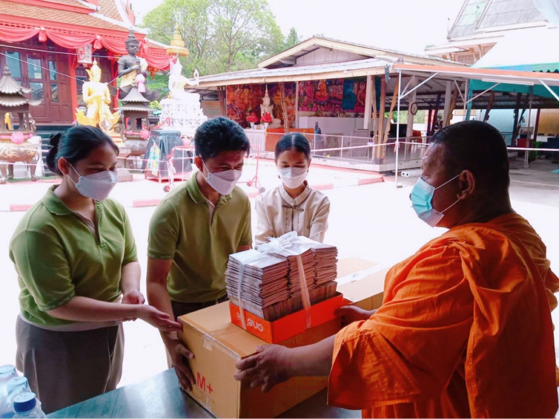 โดย ตัวแทนผู้มอบ นางสาว อสิตา วิมลไชยจิต อุปกรณ์ประกอบด้วย ชุด PPE 150 ชุด, ฟ้าทะลายโจรแคปซูล 60 เม็ด จำนวน 200 กระปุก, เแอลกอฮอล์ 80% ล้างมือ จำนวน 400 โล, เครื่องวัดออกซิเจน Premium 150 ตัว, ผ้าปูที่นอน 200 ชุด, FACE SHILD 100ชิ้น , ปรอทแก้ว 180 ชิ้น,