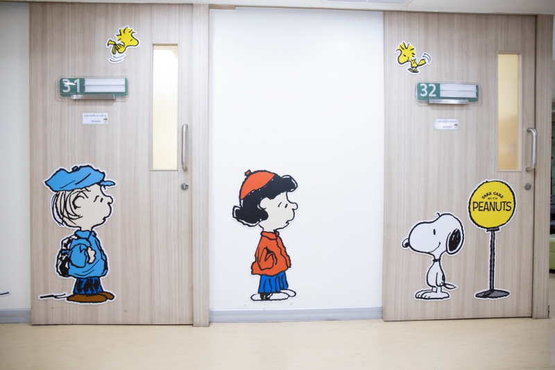 อนามัยดี ทั้งร่างกายและจิตใจ ซึ่งภาพลายการ์ตูน มีส่วนช่วยทำให้บรรยากาศโดยรอบรู้สึกอบอุ่นและสดใสมากขึ้น ตลอดจนทำให้เด็กๆ เกิดความเพลิดเพลิน ร่าเริงสนุกสนาน อารมณ์ดีเพราะมีเหล่า สนูปี้ (SNOOPY) – ชาร์ลี บราวน์ (CHARLIE BROWN) และผองเพื่อนคอยห่วงใยและเติมกำลังใจ ลดความหวาดกลัวเวลามาพบคุณหมอได้ดีอีกด้วย