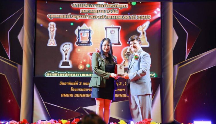 พญ.รุ่งไพลิน รัตนชีวร (หมอแยม) แพทย์เจ้าของโทมัสคลีนิค บายด็อกเตอร์แยม เข้ารับรางวัลบุคคลแห่งปี (ระฆังทอง) ครั้งที่ 15 ประจำปีพุทธศักราช 2565 สาขาสตรีต้นแบบ นักบริหารดีเด่น นักธุรกิจดีเด่น และรางวัลบุคคลตัวอย่างแห่งชาติ สาขาบุคคลผู้ส่งเสริมศาสนาดีเด่น