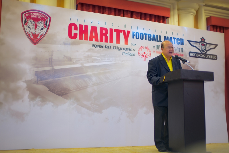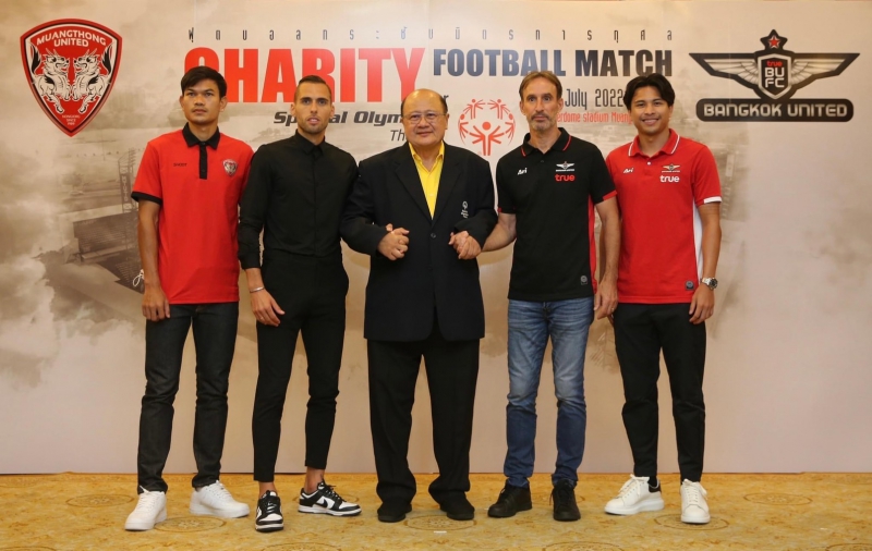 เมื่อวันที่ 21 กรกฎาคม 2565 เวลา 11.00 น. ที่ห้องประชุมยูงทอง 2 ภายในสมาคมธรรมศาสตร์ ในพระบรมราชูปถัมภ์ ได้มีการจัดงานแถลงข่าวฟุตบอลกระชับมิตรการกุศล Charity Football Match เพื่อนำรายได้มอบให้สมาคมกีฬาสเปเชียลโอลิมปิคแห่งประเทศไทย เพื่อการแข่งขันกีฬาระดับโลกของ นักกีฬาผู้พิการทางสติปัญญาทีมชาติไทย อย่างเป็นทางการ โดยในงานมี ดร. นริศ ชัยสูตร นายกสมาคมกีฬาสเปเชียลโอลิมปิคแห่งประเทศไทย, วิลักษณ์ โหลทอง ประธานสโมสรเมืองทอง ยูไนเต็ด, พรเทพ ศรีสอ้าน กรรมการ สเปเชียลโอลิมปิคแห่งประเทศไทย, รณฤทธิ์ ซื่อวาจา ผู้อำนวยการสโมสร เมืองทอง ยูไนเต็ด, มาริโอ ยูรอฟสกี้ หัวหน้า ผู้ฝึกสอน, สุรเดช อนันทพงศ์ ผู้จัดการทีมสโมสร ทรู แบงค็อก ยูไนเต็ด, ออเรลิโอ วิดมาร์ หัวหน้าผู้ฝึกสอน, นักฟุตบอลของทั้งสองทีม อดิศักดิ์ ไกรษร สโมสร เมืองทอง ยูไนเต็ด, ฐิติพันธ์ พ่วงจันทร์ สโมสร ทรู แบงค็อก ยูไนเต็ด พร้อมด้วย ไพฑูร ชุติมากรกุล นายกสมาคมนักข่าวช่างภาพกีฬาแห่งประเทศไทย ท่ามกลางกองทัพสื่อมวลชนจำนวนมาก
