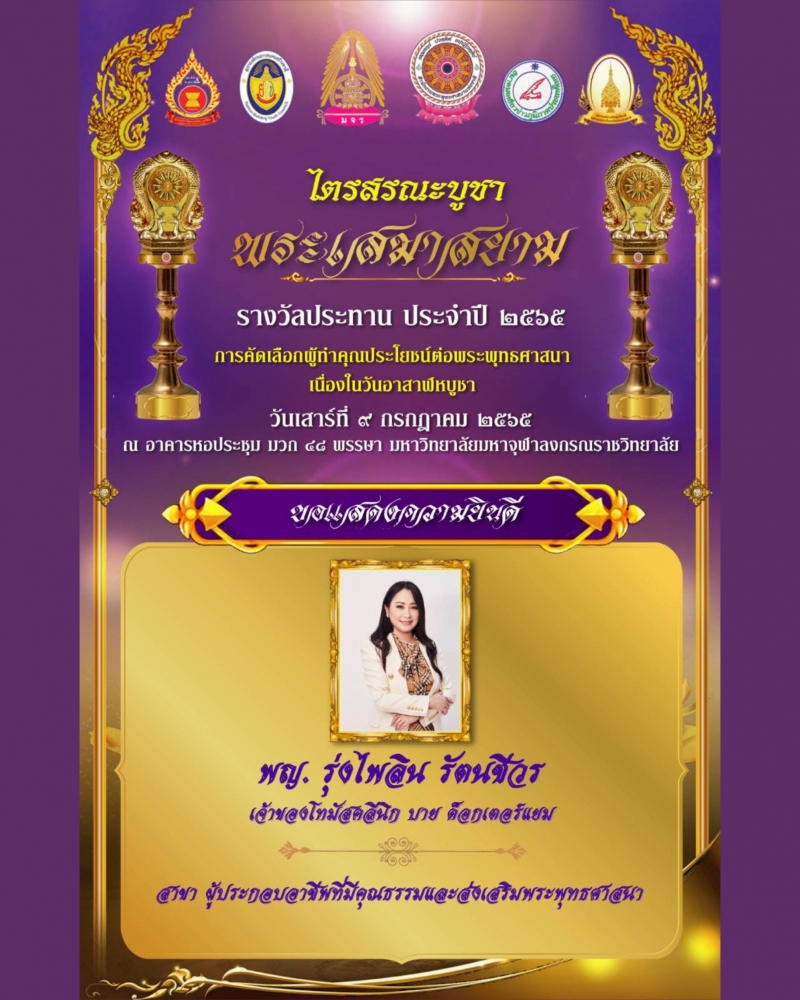 รับรางวัล ไตรสรณะบูชา พระเสมาสยาม