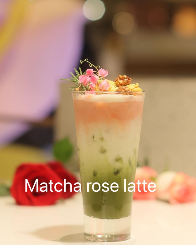 และเมนู Matcha อีกเมนูที่แนะนำคือ Matcha Rose Lattes ซึ่งมีความเป็น Layer ของ Matcha เข้มข้นจากญี่ปุ่น นม และชากุกลาบ เป็นเมนูที่หอมละมุนเข้ากันได้ดีเลย เหมาะกับคนที่ชื่นชอบความหอมของชากุหลาบ และความเข้มข้นของ Matcha เมนูนี้นอกจากอร่อยแล้ว ถ่ายรูปออกมายังสวยอีกด้วย”