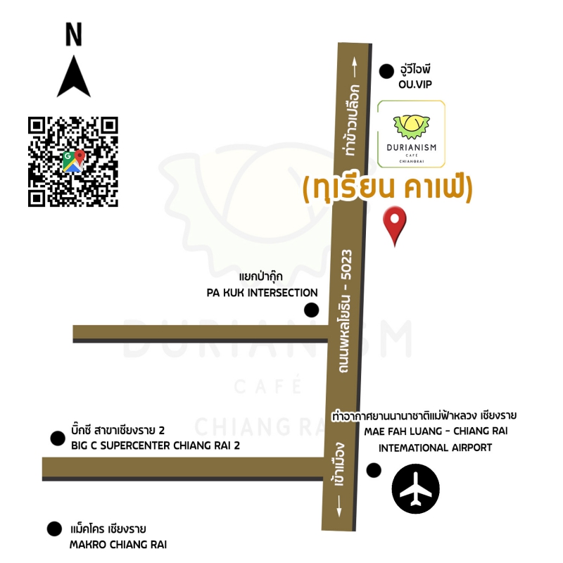 อย่าลืมนะคะ อยากทานทุเรียนวันไหนมาที่ทุเรียนคาเฟ่เชียงรายได้ทานทุเรียนทุกวันแน่นอนค่ะ ร้านอยู่ใกล้สนามบินแม่ฟ้าหลวงเชียงราย เพียงแค่ 5 นาที