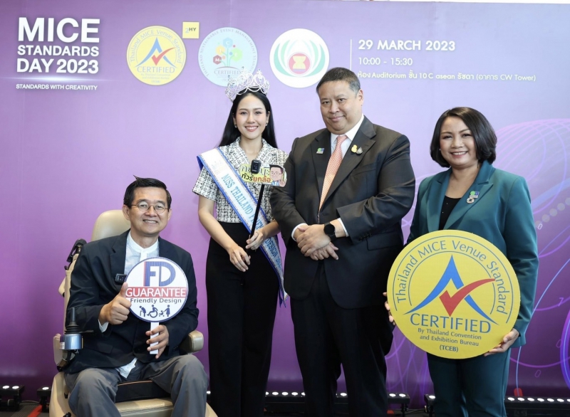 งาน MICE Standards Day 2023 ซึ่งจัดต่อเนื่องเป็นครั้งที่ 8 ในปีนี้ ทีเส็บ ยังได้ร่วมมือกับมูลนิธิอารยสถาปัตย์เพื่อคนทั้งมวลจัดทำคู่มือแนวปฏิบัติการจัดประชุมและนิทรรศการที่เป็นมิตรกับคนทั้งมวล หรือ Friendly Design Guide Book เพื่อส่งเสริมให้เกิดการจัดสิ่งอำนวยความสะดวกที่เป็นมาตรฐานสากลสำหรับคนทุกกลุ่มวัย และทุกสภาพร่างกาย สู่เป้าหมาย “ไมซ์ ฟอร์ ออล” หรือเมืองไมซ์เพื่อคนทั้งมวล