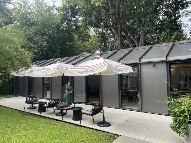 สปาแห่งนี้มีพื้นที่พักผ่อนทั้งในร่มและกลางแจ้ง ให้ลูกค้าได้เลือกตามความชอบ การบริการดูเป็นกันเอง