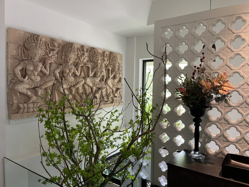 เช่น ตุ๊กตาหินและไม้แกะสลัก ซึ่งให้ความรู้สึกถึงความเป็นธรรมชาติและสงบสุข เตียงทรีทเมนต์สะอาดสะอ้านและเตรียมพร้อมอย่างดีสำหรับผู้ที่มาใช้บริการ