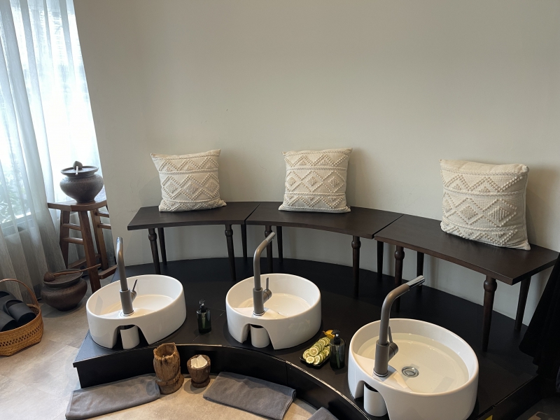 การตกแต่งของสปาได้ถูกออกแบบมาอย่างพิถีพิถันเพื่อสร้างบรรยากาศที่สงบเงียบและผ่อนคลายด้วย