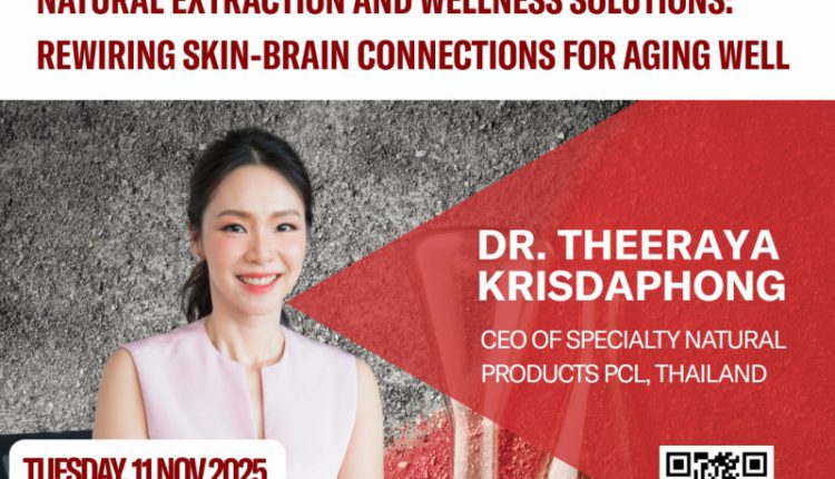 สำหรับการบรรยายของดร.ธีรญา ครั้งนี้มาในหัวข้อ “Natural Extraction and Wellness Solutions: Rewiring Skin-Brain Connections for Aging Well” ว่าด้วยการสกัดสารธรรมชาติและโซลูชันด้านสุขภาวะ ที่เชื่อมโยงความสัมพันธ์ระหว่างผิวหนังและสมอง เพื่อการดูแลวัยอย่างมีสุขภาพดี ซึ่งถือเป็นแนวคิดล้ำสมัยที่สะท้อนถึงทิศทางใหม่ของอุตสาหกรรมความงาม ที่ไม่ได้มองเพียง “ผิวภายนอก” แต่รวมถึง “สุขภาวะจากภายใน” ด้วย