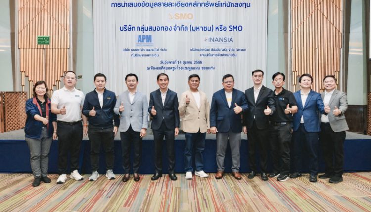 นายกิตติพงษ์ พวงมาลา ประธานเจ้าหน้าที่บริหาร นายกุศล ศรีเปารยะ ประธานเจ้าหน้าที่บริหารการเงิน บริษัท กลุ่มสมอทอง จำกัด (มหาชน) หรือ SMO หนึ่งในผู้นำในการผลิตและจำหน่ายน้ำมันปาล์มดิบของประเทศไทย ซึ่งมีโรงงาน 4 จุดครอบคลุมพื้นที่ยุทธศาสตร์สำคัญของปาล์มน้ำมัน และธุรกิจผลิตและจำหน่ายไฟฟ้าจากเชื้อเพลิงก๊าซชีวภาพ พร้อมด้วยดร.สมภพ ศักดิ์พันธ์พนม ประธานกรรมการ นายสมศักดิ์ ศิริชัยนฤมิตร ประธานเจ้าหน้าที่บริหาร นายสุริยา ธรรมธีระ รองกรรมการผู้จัดการ บริษัท แอสเซท โปร แมเนจเม้นท์ จำกัด (APM) ในฐานะที่ปรึกษาทางการเงินและนายภควัฒน์ ตุลยนิติกุล ผู้อำนวยการอาวุโส บริษัทหลักทรัพย์ ฟินันเซียไซรัส จำกัด (มหาชน) ในฐานะแกนนำการจัดจำหน่ายและรับประกันการจำหน่าย ร่วมนำเสนอข้อมูลธุรกิจ วิสัยทัศน์ ข้อมูลทางการเงิน และศักยภาพการเติบโตของบริษัท ให้แก่นักลงทุนในจังหวัดขอนแก่น โดยมีนักลงทุนให้ความสนใจเข้าร่วมรับฟังข้อมูลเป็นจำนวนมาก ณ โรงแรมพูลแมน ขอนแก่น ราชา ออคิด