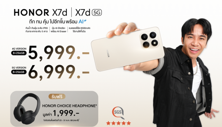 เปิดตัว! HONOR X7d Series สมาร์ตโฟน ถึก ทน คุ้ม ไปอีกขั้น พร้อม AI จัดเต็มที่สุดในเรทราคานี้ เริ่มต้นเพียง 5,999 บาท พร้อมขาย 23 ต.ค.นี้!