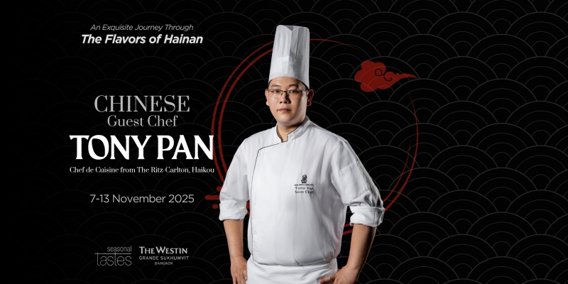 โรงแรมเดอะ เวสทิน แกรนด์ สุขุมวิท กรุงเทพฯ ขอเชิญทุกท่านร่วมเปิดประสบการณ์การเดินทางแห่งรสชาติจากเกาะไหหลำ กับกิจกรรมพิเศษ Hainanese Guest Chef Week โดยเชฟรับเชิญ เชฟโทนี่ พาน (Tony Pan) จากโรงแรม The Ritz-Carlton, Haikou ที่จะมารังสรรค์เมนูจานเด่นให้ลิ้มลอง ณ ห้องอาหาร Seasonal Tastes ระหว่างวันที่ 7 – 13 พฤศจิกายน 2568