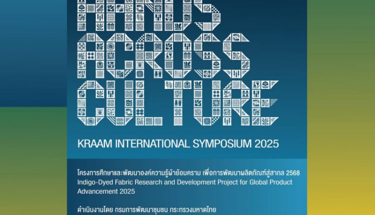 กรมการพัฒนาชุมชน ขอเชิญผู้สนใจเข้าร่วมงาน “Kraam International Symposium 2025” เวทีระดับนานาชาติที่จัดขึ้นเพื่อสร้างการรับรู้และแลกเปลี่ยนองค์ความรู้เกี่ยวกับผ้าย้อมคราม งานสิ่งทอ และภูมิปัญญาหัตถกรรมของไทย ผ่านการสนทนา ฟอรัมนักคิด การนำเสนอผลงานสร้างสรรค์ และกิจกรรมพบปะเครือข่ายสร้างสรรค์จากทั้งในประเทศและต่างประเทศ อันจะนำไปสู่การพัฒนาผลิตภัณฑ์ผ้าไทยให้ตอบโจทย์ตลาดสากลและผลักดัน “ครามไทยสู่ความเป็นเมืองครามโลก” โดยงานสัมมนาวิชาการระดับนานาชาติครั้งนี้ จะจัดขึ้นระหว่างวันที่ 19 – 22 พฤศจิกายน 2568 ณ ชั้น 14 เอ็มทาวเวอร์ กรุงเทพมหานคร