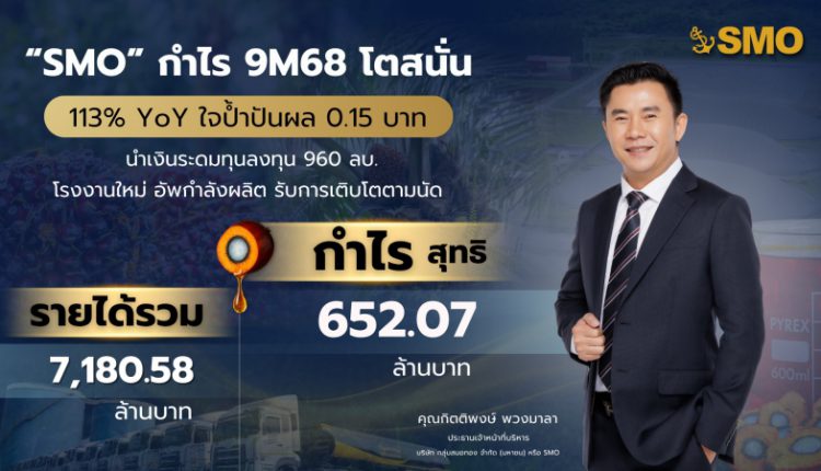 “SMO” กำไร 9M68 โตสนั่น 113% YOY ใจป้ำปันผล 0.15 บาท นำเงินระดมทุนลงทุน 960 ลบ. โรงงานใหม่ อัพกำลังผลิต รับการเติบโตตามนัด
