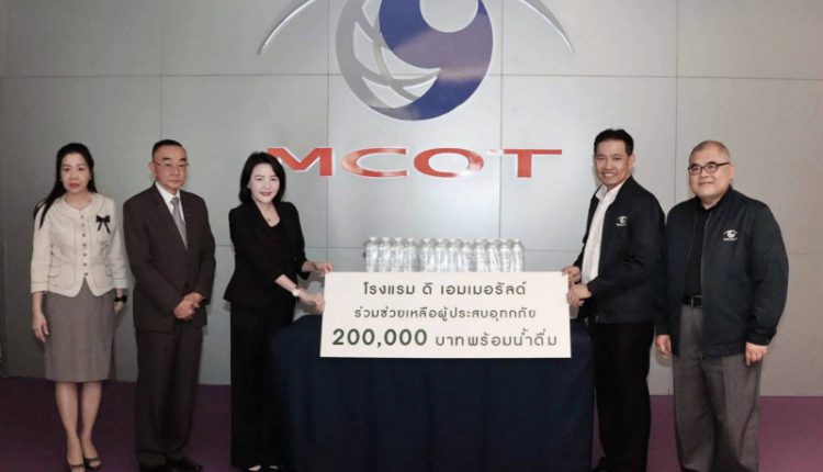 ฐิติมา ถิรกิจพงศ์ รองประธานบริหาร โรงแรม ดิ เอมเมอรัลด์ นำทีมผู้บริหารร่วมบริจาคเงิน 200,000 บาทพร้อมน้ำดื่ม เพื่อช่วยเหลือผู้ประสบอุทกภัยภาคใต้ ผ่านสภากาชาดไทย โดยมี สมหมาย สุวรรณวงษ์ รักษาการในตำแหน่งผู้อำนวยการใหญ่ บมจ. อสมท. เป็นตัวแทนรับมอบ และ กิตติพงษ์ ขันติรัตน์ รองกรรมการผู้อำนวยการใหญ่สายงานบริหารจัดการองค์กร ร่วมเป็นสักขีพยาน ณ อาคารปฏิบัติการ อสมท. เมื่อวานนี้