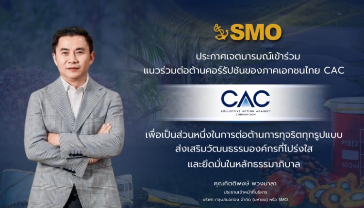 “การเข้าร่วมโครงการ CAC ถือเป็นก้าวสำคัญของ SMO ในการยกระดับมาตรฐานการกำกับดูแลกิจการ และสะท้อนเจตนารมณ์ของบริษัทฯ ที่จะดำเนินธุรกิจด้วยความโปร่งใส ซื่อสัตย์ และรับผิดชอบต่อสังคมอย่างแท้จริง เราเชื่อว่าหลักธรรมาภิบาลที่เข้มแข็งเป็นรากฐานสำคัญของการเติบโตอย่างยั่งยืนในระยะยาว SMO ให้ความสำคัญกับการเติบโตควบคู่ความรับผิดชอบ โดยเฉพาะในมิติ Governance ภายใต้กรอบ ESG ซึ่งไม่เพียงช่วยลดความเสี่ยงในการดำเนินธุรกิจ แต่ยังช่วยเสริมสร้างความเชื่อมั่นให้กับนักลงทุน สถาบันการเงิน และพันธมิตรทางธุรกิจทั้งในและต่างประเทศ” นายกิตติพงษ์ กล่าว