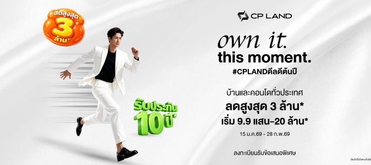 19 มกราคม 2569, กรุงเทพฯ — บริษัท ซี.พี. แลนด์ จำกัด (มหาชน) หรือ CP LAND เปิดตัวแคมเปญต้นปี “own it. this moment. #CPLANDดีลดีต้นปี” ครอบคลุมบ้านและคอนโดทั้งโครงการใหม่และโครงการพร้อมอยู่ทั่วประเทศ ต้อนรับการเริ่มต้นปีด้วยข้อเสนอพิเศษที่ออกแบบมาเพื่อช่วยให้การเป็นเจ้าของบ้านคุณภาพเป็นเรื่องง่ายและคุ้มค่ามากยิ่งขึ้น