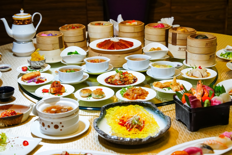 เป็นบุฟเฟต์ติ่มซำสุดอลังการ ที่มีครบทุกอย่างมีทั้งเป็ดปักกิ่ง หมูกรอบ ติ่มซำสด อาหารญี่ปุ่น และซุปต่างๆ ใครชอบทานอาหารจีนแบบต้นรับต้องที่นี่เท่านั้น เค้ามีติ่มซำสไตล์กวางตุ้งเสิร์ฟไม่อั้นทั้งเมนูอาหารจีนจานหลัก ซุป ของหวาน ผ่านการรังสรรค์เมนูจาก เชฟเพลิน ประพฤติธรรม พ่อครัวใหญ่ประจำห้องอาหารจีน ฝีมือเยี่ยม ด้วยประสบการณ์ด้านอาหารจีนกว่า 20 ปี ให้ได้เลือกลิ้มลองกันตลอด 2 ชั่วโมงเต็ม