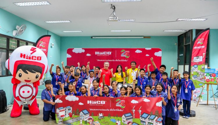 บริษัท ฮาโก้ อิเลคทริค (ประเทศไทย) จำกัด ตอกย้ำบทบาทผู้นำอุปกรณ์ไฟฟ้าคุณภาพ ของไทย เดินหน้าสานต่อพันธกิจด้านความปลอดภัยและความยั่งยืน เนื่องในโอกาสครบรอบ 25 ปี ผ่านโครงการ “25 ปี ฮาโก้: ส่งมอบความปลอดภัย เพื่อโลกที่ยั่งยืน” Haco’s 25th Anniversary: Delivering Safety for a Sustainable World in 2025) ภายใต้แนวคิดหลัก “ปลอดภัยที่หนึ่ง ยั่งยืนเสมอ (Safety First, Sustainability Always)” ซึ่งได้ดำเนินกิจกรรม CSR ลงพื้นที่โรงเรียนเป้าหมายใน 5 จังหวัด ระหว่างเดือนกรกฎาคม – กันยายน 2568 เพื่อถ่ายทอดองค์ความรู้ด้านความปลอดภัยทางไฟฟ้า พลังงานสะอาด และการพัฒนาอย่างยั่งยืนสู่เยาวชนและชุมชนอย่างเป็นรูปธรรม