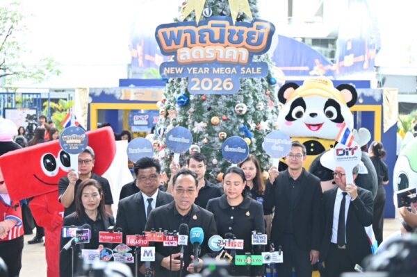พาณิชย์ช่วยไทย เปิดกล่องของขวัญใบใหญ่ “New Year Mega Sale 2026” ลดสูงสุด 80% ต่อเนื่องข้ามปีถึง 2569 มอบเป็นของขวัญปีใหม่ให้ประชาชน เกษตรกร และผู้ประกอบการ คาดลดค่าครองชีพ กว่า 5,000 ล้านบาท