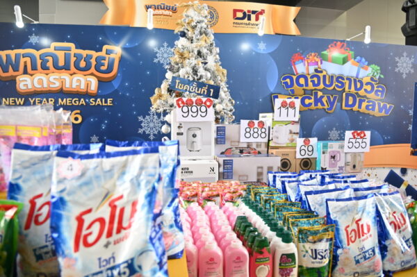 กระทรวงพาณิชย์ โดยกรมการค้าภายใน เดินหน้าลดค่าครองชีพ จับมือผู้ผลิตและห้างโมเดิร์นเทรดกว่า 250 ราย จัดแคมเปญลดราคาสินค้าสูงสุด 80% ทั้งการจำหน่ายภายในงานจัดที่กระทรวงพาณิชย์ระหว่างวันที่ 23–25 ธันวาคม 2568 และขยายต่อเนื่องที่ห้างทั่วประเทศถึงวันที่ 31 มกราคม 2569 ควบคู่การสนับสนุนผู้ประกอบการชายแดนไทย–กัมพูชา เปิดพื้นที่ออกร้านภายในงานและเตรียมนำสินค้าเข้าร่วมจำหน่ายในงานธงฟ้าทุกแห่ง พร้อมเชื่อมโยงตลาดสินค้าเกษตรร่วมกับพันธมิตรทั้งการจำหน่ายและแปรรูป อาทิ หอมแดงศรีสะเกษ และปลากะพงสามน้ำจ.สงขลา ตามคอนเซป “ไทยช่วยไทย ซื้อของไทย เศรษฐกิจไทยยั่งยืน”