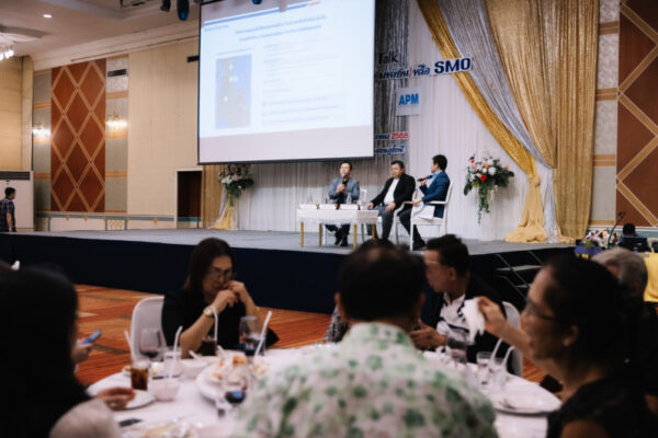 นายกุศล ศรีเปารยะ ประธานเจ้าหน้าที่บริหารการเงิน นายศักดา ทองรอง รองกรรมการผู้จัดการอาวุโส สายงานสำนักงาน นางสาวภักดิ์ศินันท์ บุญส่ง รองกรรมการผู้จัดการอาวุโส สายงานขายภายในประเทศ บริษัท กลุ่มสมอทอง จำกัด (มหาชน) หรือ SMO พร้อมด้วยดร.สมภพ ศักดิ์พันธ์พนม ประธานกรรมการ นายสุริยา ธรรมธีระ รองกรรมการผู้จัดการ บริษัท แอสเซท โปร แมเนจเม้นท์ จำกัด (APM) ในฐานะที่ปรึกษาทางการเงิน ร่วมนำเสนอข้อมูลธุรกิจและทิศทางการเติบโตของบริษัท แก่นักลงทุนจังหวัดสุราษฎร์ธานี ในงานสัมมนา “Exclusive Talk” โดยบริษัทได้ให้ข้อมูลเกี่ยวกับความเชี่ยวชาญของ SMO ในธุรกิจผลิตและจำหน่ายน้ำมันปาล์มดิบ ธุรกิจที่เกี่ยวเนื่อง รวมถึงธุรกิจผลิตและจำหน่ายไฟฟ้าจากก๊าซชีวภาพ ซึ่งเป็นการต่อยอดสร้างมูลค่าเพิ่มจากวัตถุดิบภายในโรงงาน เพื่อเพิ่มประสิทธิภาพการดำเนินงานและขับเคลื่อนองค์กรสู่การเติบโตอย่างยั่งยืนตามแนวทาง ESG