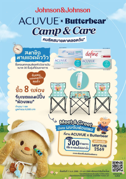 สำหรับไฮไลท์แคมเปญ ACUVUE x Butterbear Camp & Care นับเป็นการมอบของขวัญสุดพิเศษยิ่งใหญ่ปลายปีสำหรับสมาชิกมายแอคคิววิว