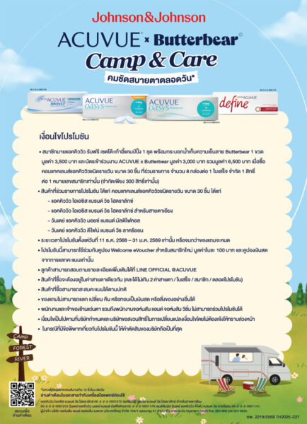 กรุงเทพฯ 23 ธันวาคม 2568 – ACUVUE (แอคคิววิว) แบรนด์คอนแทคเลนส์จาก จอห์นสัน แอนด์ จอห์นสัน เมดเทค จัดแคมเปญใหญ่ส่งท้ายปี ACUVUE x Butterbear Camp & Care ชวนดูแลสุขภาพสายตา เพื่อการใช้ชีวิตทำกิจกรรมในทุกช่วงเวลาได้อย่างสะดวก และมั่นใจ พร้อมมอบประสบการณ์ความสุข
