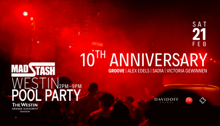 10 ปีแห่งการสร้างตำนาน 10 ปีที่แมด สแตช ร่วมกับ โรงแรมเดอะ เวสทิน แกรนด์ สุขุมวิท เปลี่ยนพื้นที่ริมสระให้กลายเป็นความบ้าคลั่งที่สนุกสนานที่สุดในกรุงเทพฯ! วันเสาร์ที่ 21 กุมภาพันธ์นี้ กลับมาครั้งกับการฉลองทศวรรษแห่งความเซ็กซี่ เสียงดนตรี และการปลดปล่อยตัวตนแบบไร้ขีดจำกัด